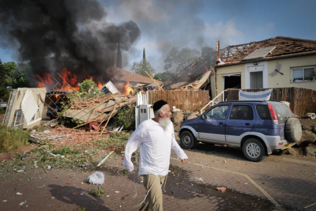 Footage taken by residents showed raging fires and roofs collapsing at the sites of the rocket impact.