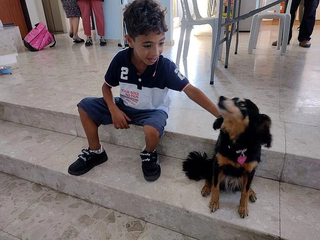 Another thing that the mother was telling us is that yesterday, when the war between Israel and Gaza started, Naim was very scared and crying a lot because they heard the sirens sounding and the rockets falling. Today, he was calmer and was even asking how Shevie was. Shevie is our little dog here in our house in Ashdod that Naim loved to play with, so we used that tool to encourage him to be strong, recover soon and he can come to our house to play again with Shevie.'