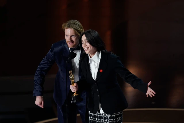 Hollywood celebrities, Ramy Youssef, Mark Ruffalo, Ava DuVernay, Billie Eilish and her brother Finneas all wore red pins distributed by a group that calls itself, 'Artists4Ceasefire."