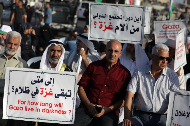 Palestinians participate in a rally at the Gaza City sea port, in which they demand their right to receive gas from maritime fields in the eastern Mediterranean and the lifting of the blockade, Sept. 13 2022. (Photo: Majdi Fathi/NurPhoto via Reuters)