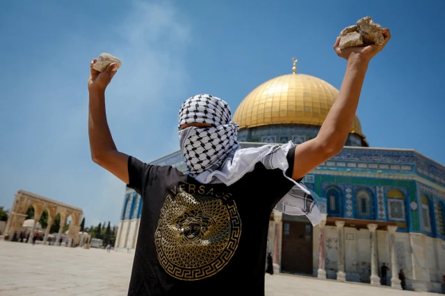 After the prayers, several hundred Muslims clashed with police, throwing rocks and waving Palestinian and Hamas flags. The crowds shouted slogans in favor of Hamas and called for jihad (holy war).