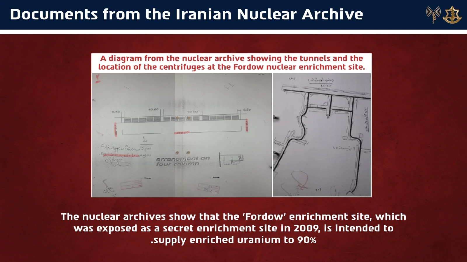 “The IDF is revealing for the first time that the Iranian regime is advancing a secret plan for the technological advancement of all parts of the development of a nuclear weapon. In the framework of this plan, senior nuclear scientists in Iran have been working to secretly develop all components needed for developing a nuclear weapon,” the IDF said.