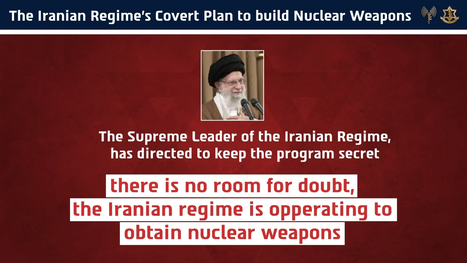 According to the IDF, “The convergence of the Iranian regime's efforts to produce thousands of kilograms of enriched uranium, alongside decentralized and fortified enrichment compounds in underground facilities, enables the Iranian regime to enrich uranium to military-grade levels, enabling the regime to obtain a nuclear weapon within a short period of time.”