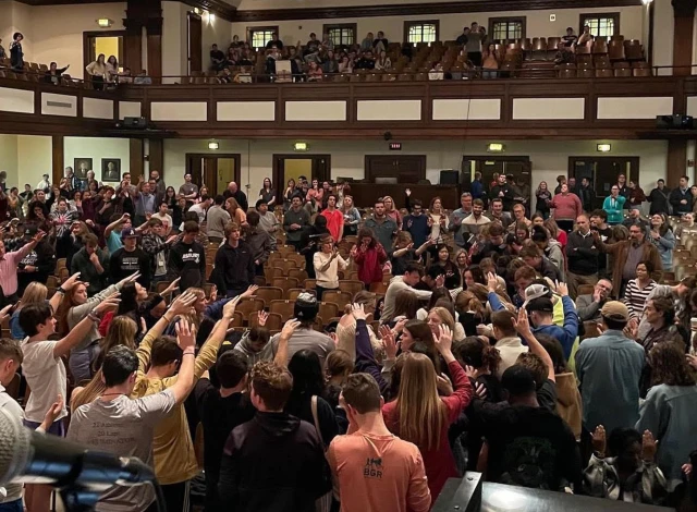 Many students refused to leave the chapel, continuing to worship and pray overnight.