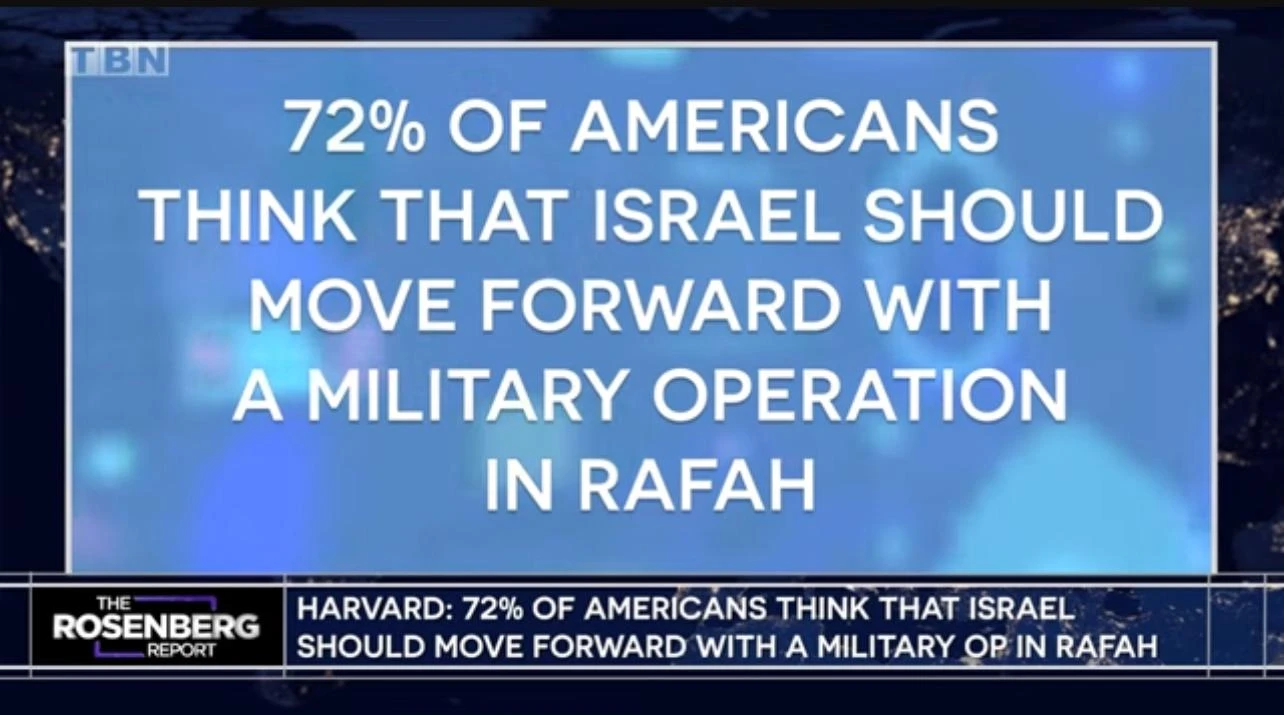 Upwards of 75% of the American people say they believe Israel should go into Rafah and finish off Hamas, according to a recent Harvard CAPS Harris Poll.