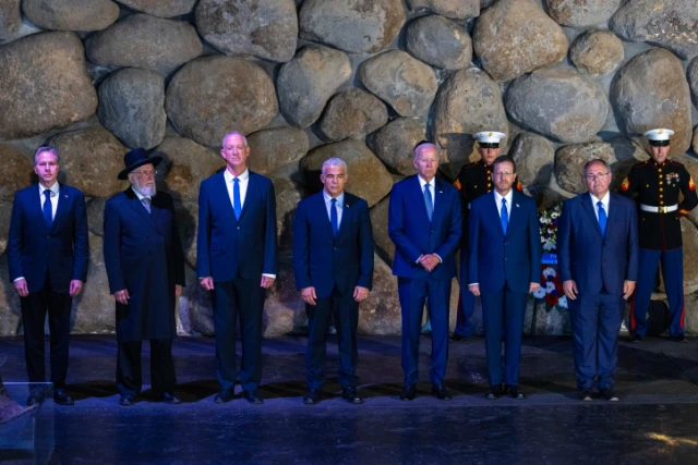 Biden wore a black velvet kippah for the official ceremony, which was held in the presence of Herzog, Yad Vashem Chairman Dani Dayan, Chairman of the Yad Vashem Council Rabbi Israel Meir Lau, Israeli Prime Minister Yair Lapid, Defense Minister Benny Gantz and U.S. Secretary of State Antony Blinken.