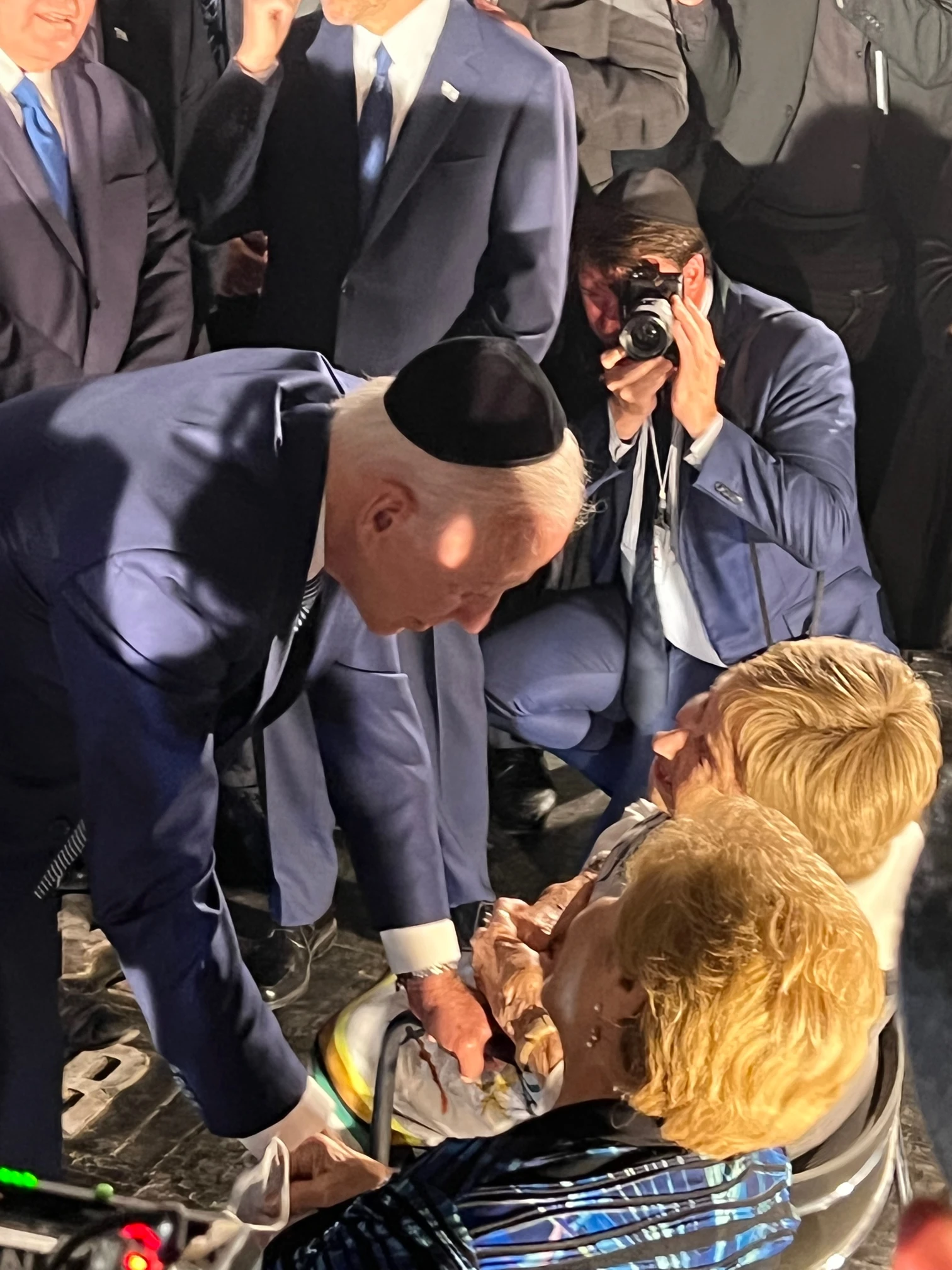 From the sidelines of the conversation, the survivors could be seen grasping the president’s sleeve – crying and then laughing together. They spoke for so long that some of the officials accompanying Biden became slightly anxious, with President Isaac Herzog eventually cutting off the conversation by informing the survivors that Biden had to leave.