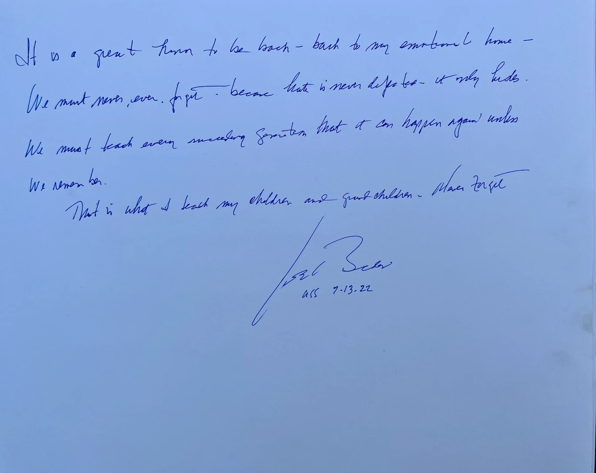 “We must teach every succeeding generation that it can happen again unless we remember,” his note continued. “That is what I teach my children and grandchildren. Never forget.”