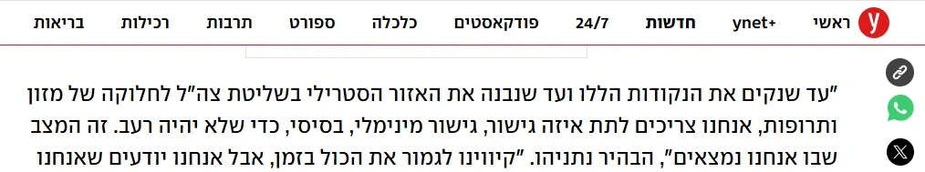 “…until we build the sterile area under IDF control for the distribution of food and medicine, we need to provide some kind of bridging – minimal, basic bridging – so that there will not be hunger.”