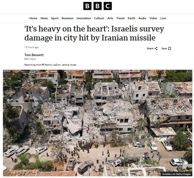 On June 14th visitors to the BBC news website found reporting from the city of Rishon LeZion, which was one of the locations hit in the previous night’s ballistic missile attacks from Iran.