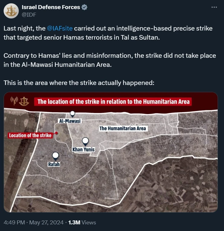 The military suspects that the munitions or some other combustible substance it was unaware of caused a secondary explosion and a fire to spread in a complex housing displaced Gazans in Rafah, killing dozens of Palestinian civilians, following an airstrike targeting two top Hamas terrorists in the area.”
