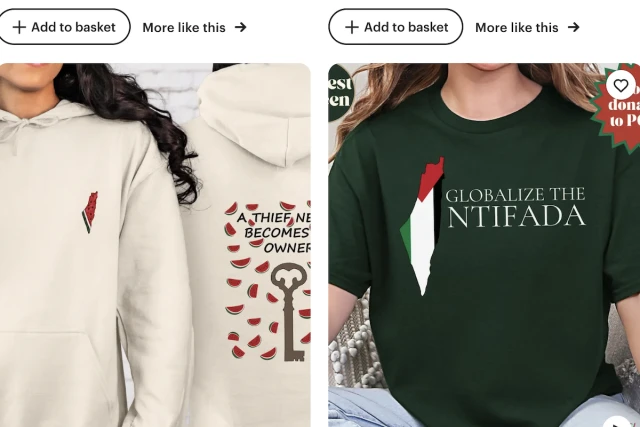 Did you know that it’s now possible to purchase Intifada Merchandise online – courtesy of eBay and Etsy. Yes, they have the latest in antisemitic fashion and matching accessories. Their stock of shirts includes such disgusting slogans as: