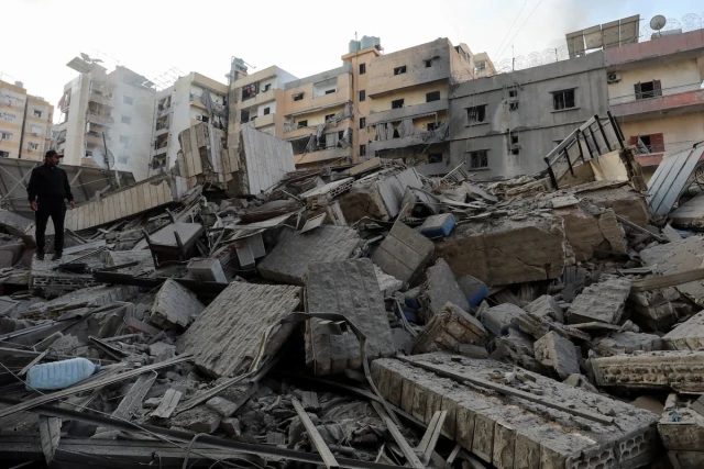 A man stands on the rubble of a damaged building in the aftermath of Israeli strikes on Beirut's southern suburbs, amid the ongoing hostilities between Hezbollah and Israeli forces, Lebanon, Oct. 6, 2024. (Photo: REUTERS/Stringer)