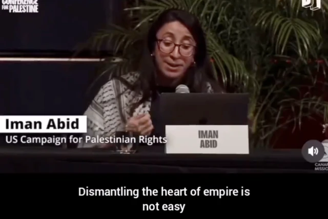 The video begins with a Detroit, Michigan conference called “The People’s Conference for Palestine,” that took place this past May, hosting over 100 organizations comprised of 3,000 activists who were challenged by a speaker, warning that some of those attendees might not return next year, since the struggle for liberation requires sacrifice – meaning that they could lose their lives.