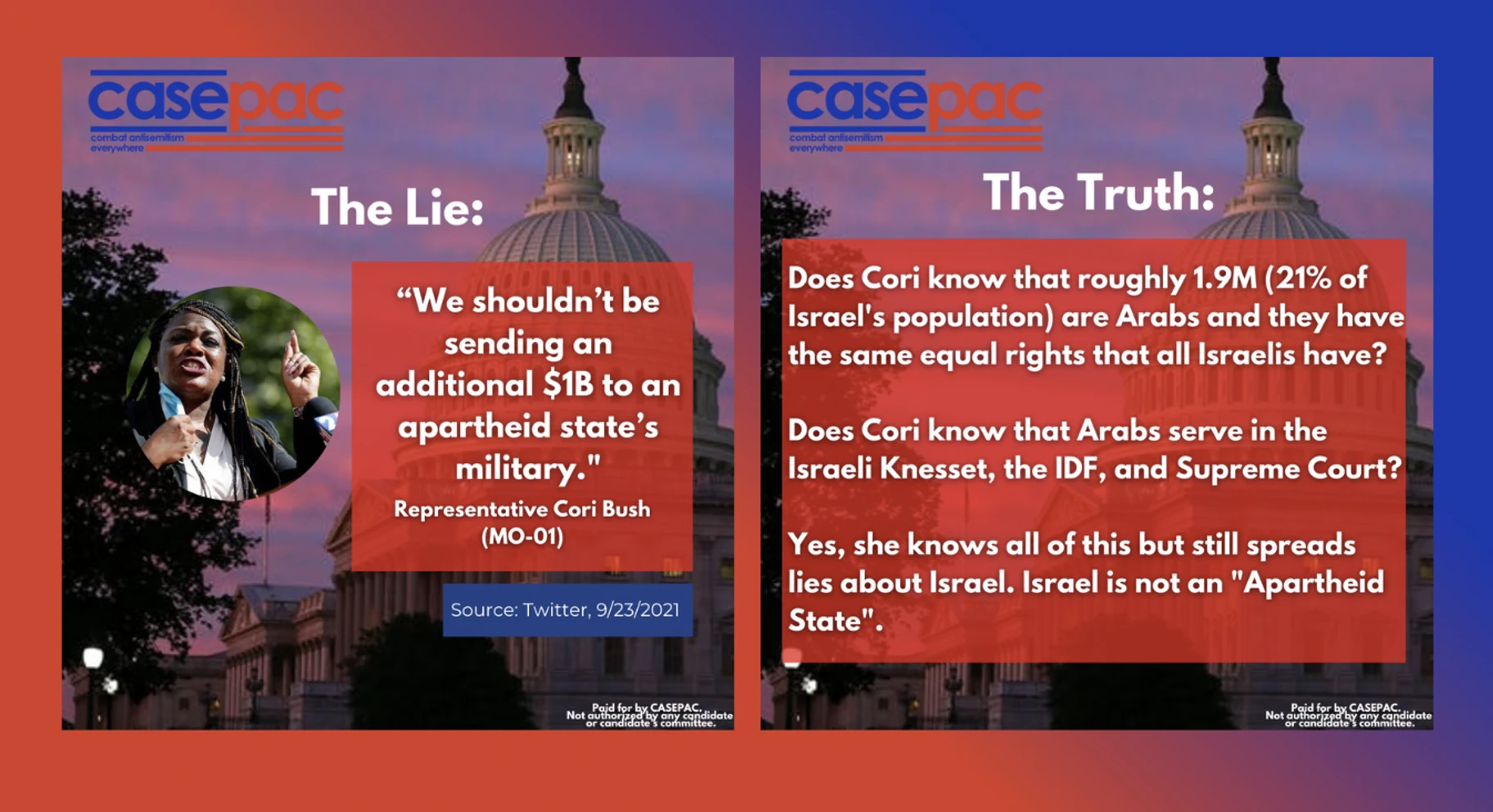 On June 22, CASEPAC launched a digital media campaign called “Lies vs Truth,” aimed at exposing lies spread by members of Congress about the Jewish community, Israel and Zionism.