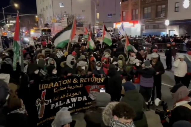 The pro-Palestine protesters were chanting “Zionists go to hell”, asking “How many kids did you kill today?” and waving Palestinian flags while demanding an “intifada revolution.” By 9:00 p.m. NYPD officers had arrested several people after the situation became violent.