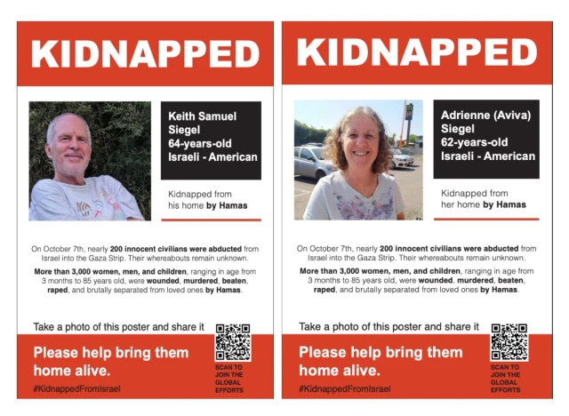 Adrian (Aviva) and Keith Sigal were kidnapped from their home on Kibbutz Kfar Aza on Saturday, Oct. 7, 2023.