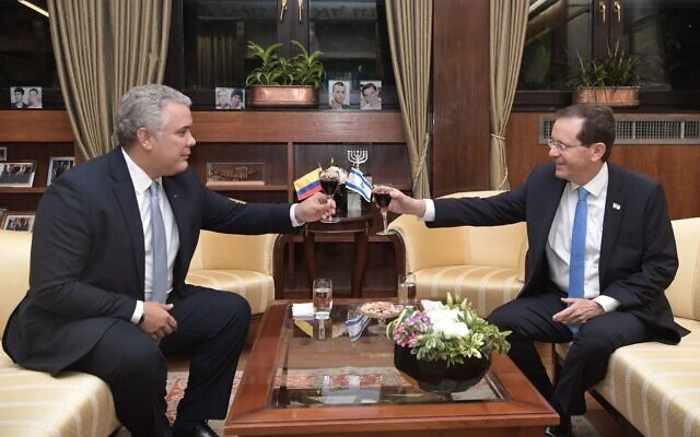 Israel’s President Isaac Herzog received the Colombian head of state at the president’s official residence in Jerusalem on Monday and praised his decision to open its first innovation office abroad in Israel’s capital.