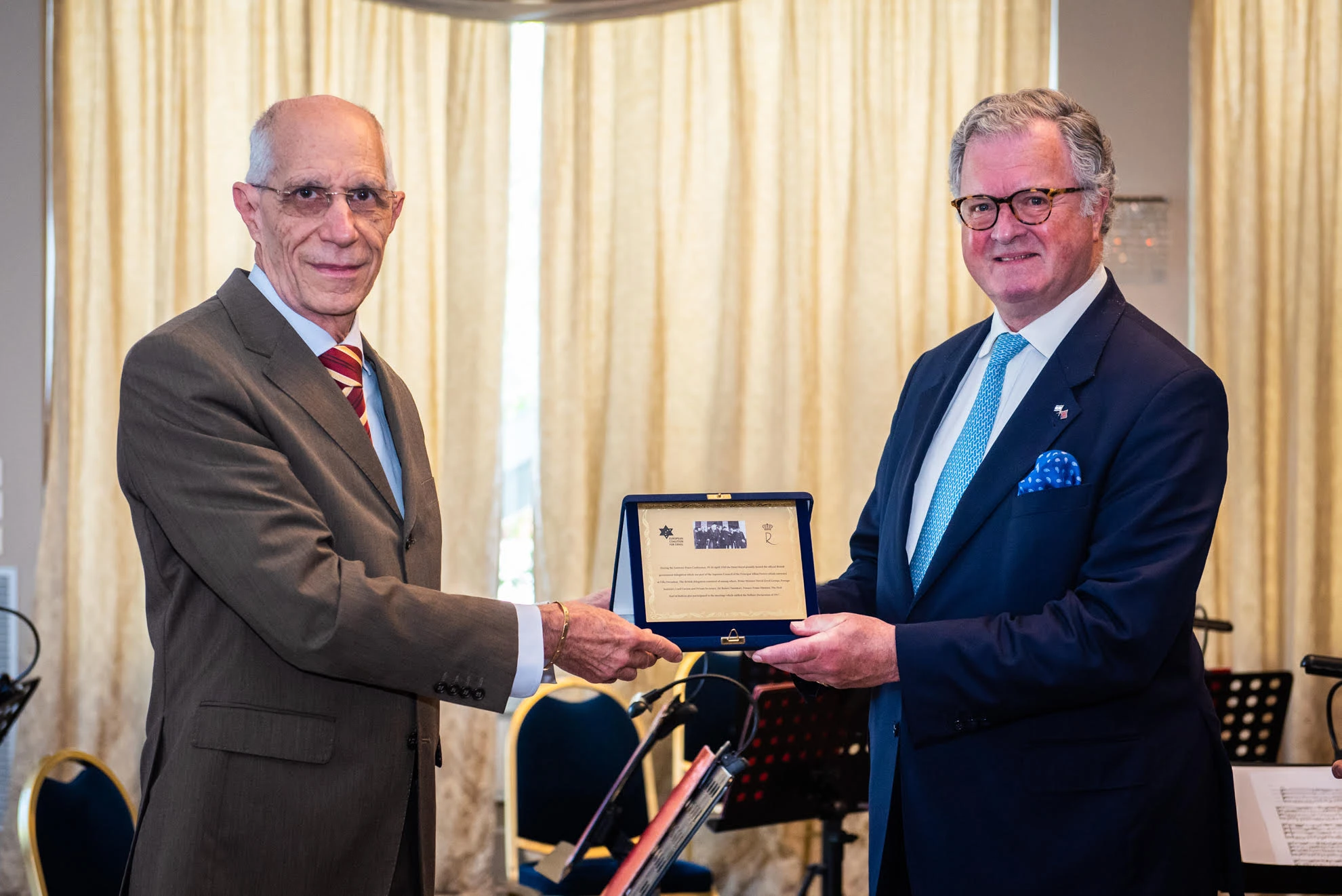 The event was organized by European Coalition for Israel. As part of the festivities, a commemorative plaque was presented to the 5th Earl of Balfour, whose great-great uncle was the chief architect of the historical document which became international law in San Remo.