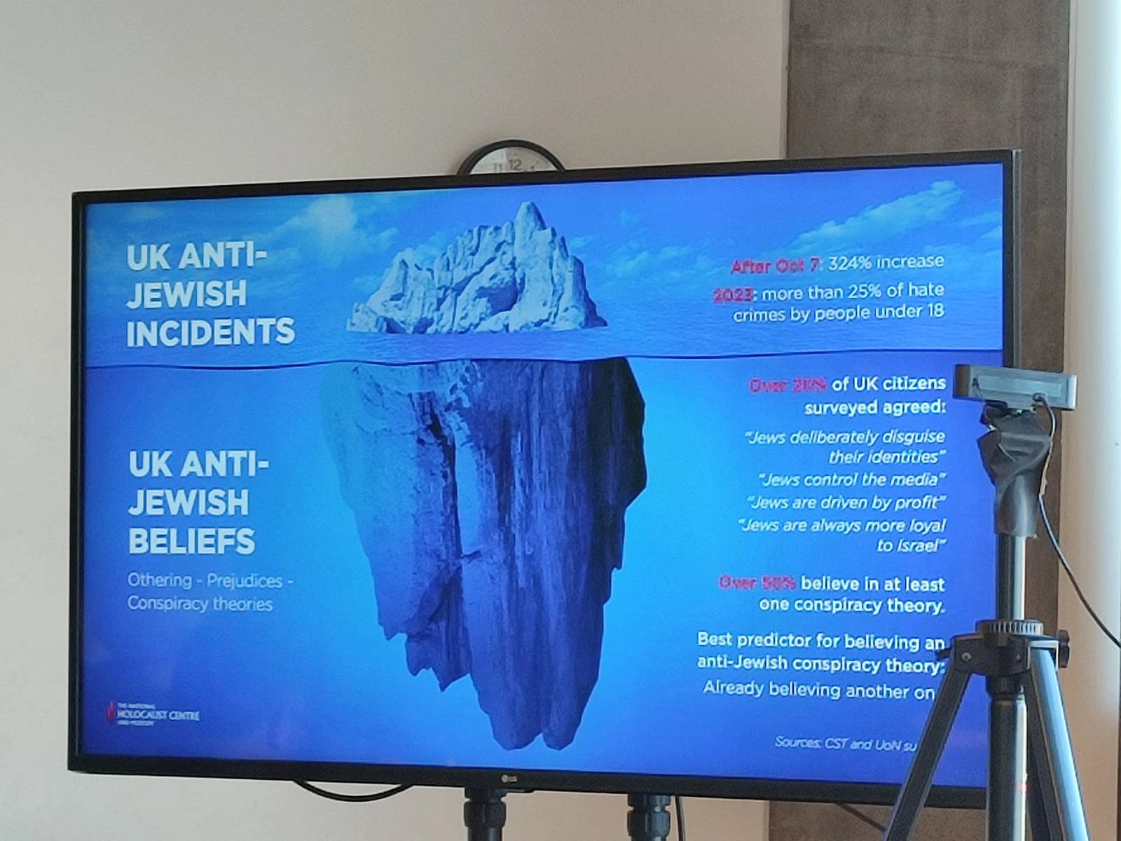 Umbach highlighted the sheer scale of the problem, noting that 90% of colleagues, students, and young people are completely unaware of it. She cited the Community Security Trust (CST) figures that revealed a 324% rise in anti-Jewish incidents after Oct. 7, 2023, with more than 25% of hate crimes being carried out by people under 18.