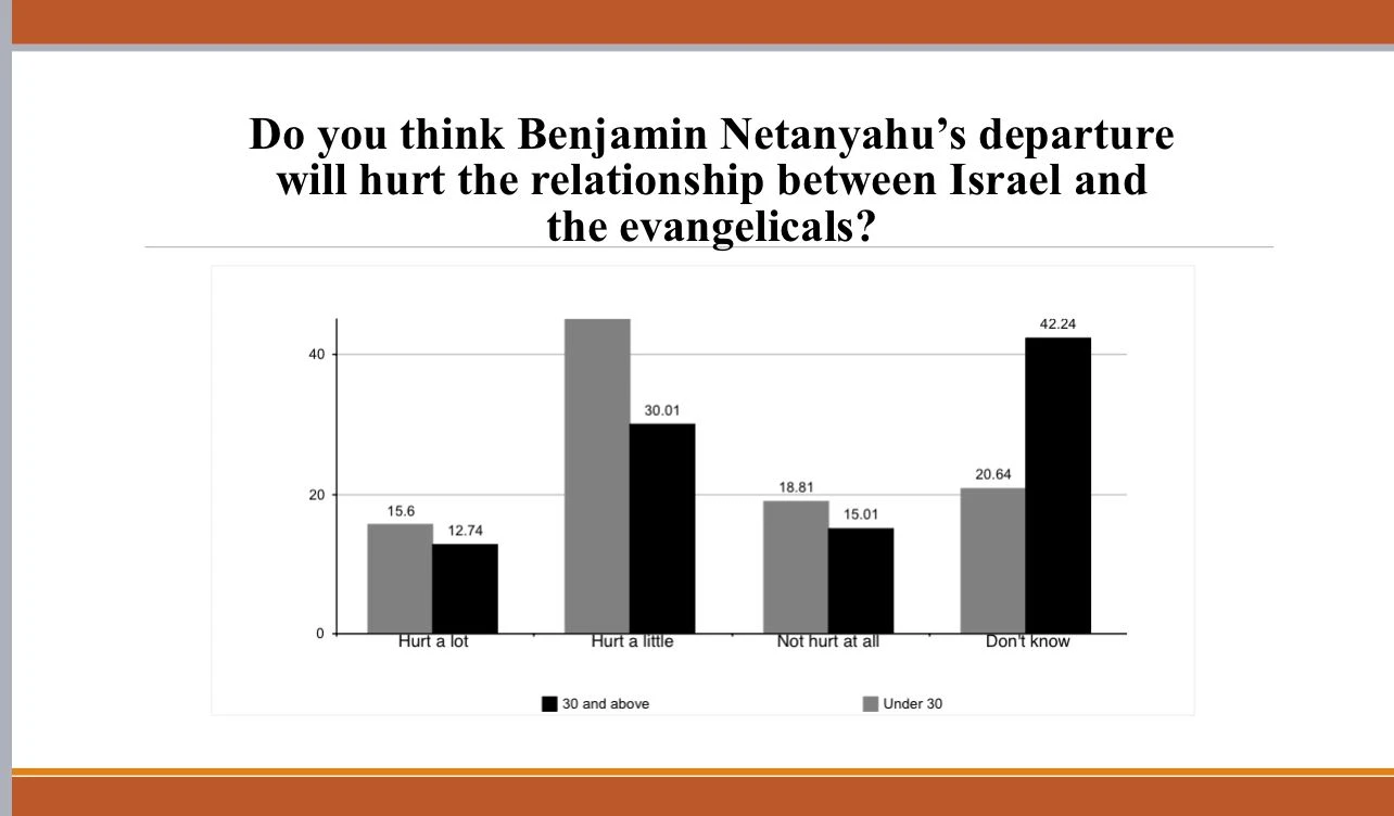 Nearly half of Evangelicals – some 46% – expressed concern that Netanyahu’s departure as premier “will hurt the relationship between Israel and American Evangelicals.”