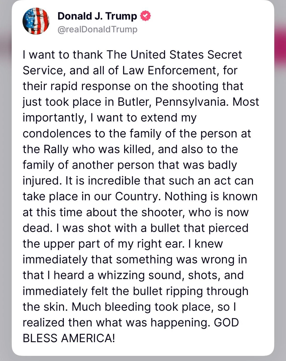 DENVER, COLORADO — It’s an absolute miracle that former U.S. President Donald J. Trump was not killed today.