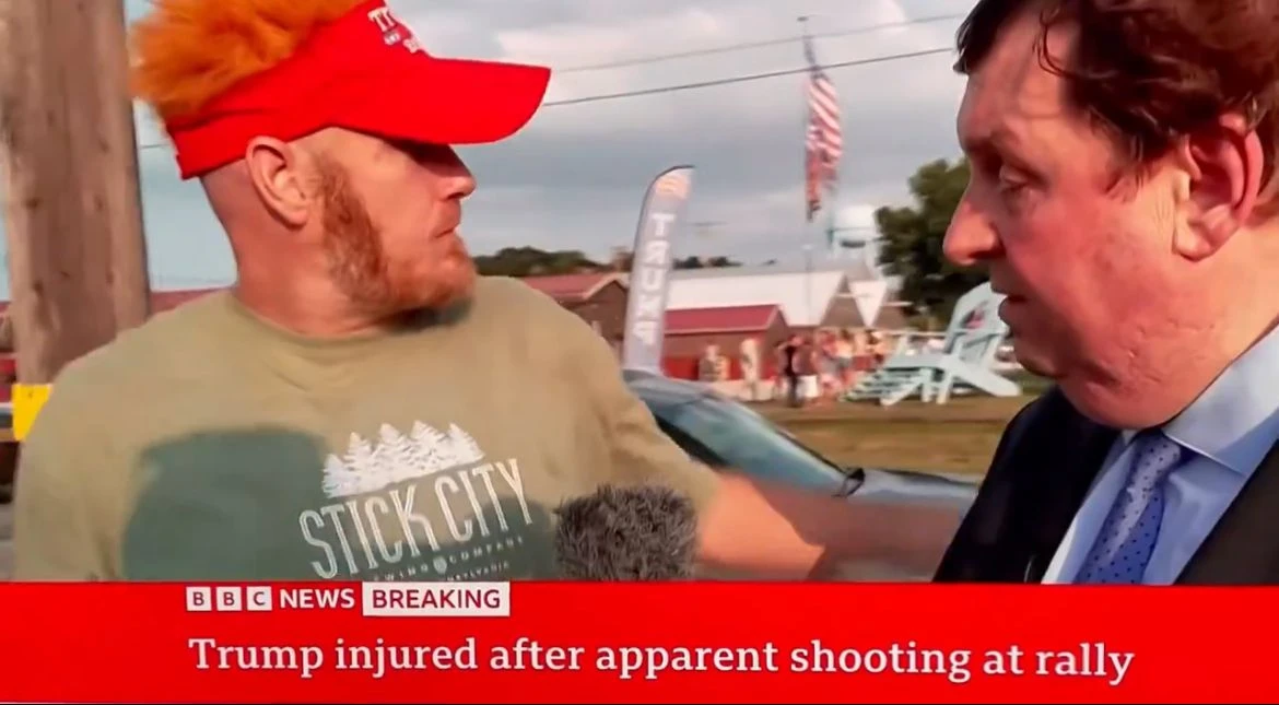 Another eyewitness – a young man with a shock of red hair wearing a red, pro-Trump cap — spoke to BBC News shortly after the incident.