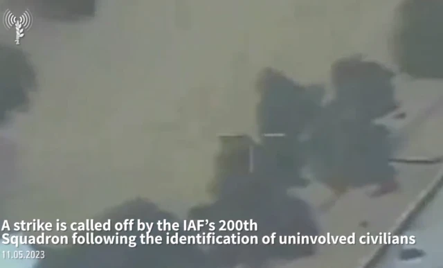 The Israel Defense Forces released a video this morning showing that a drone airstrike was called off after an operator noted the presence of a child in the vicinity of the intended strike zone.