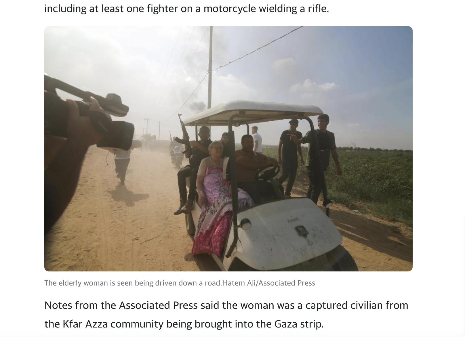 “A person cannot stand by when an 85-year-old woman is kidnapped in the name of journalistic freedom,” said Adva Adar, whose grandmother, Yaffa, was filmed by journalists working for the Associated Press while she was abducted into the Gaza Strip.
