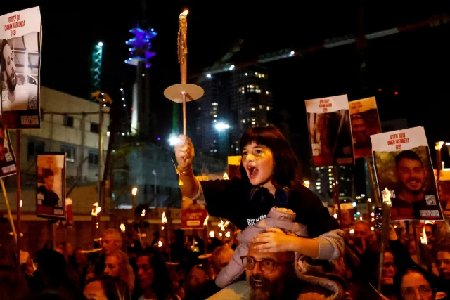 A child holds a candle during a torch march for Israeli hostages, who are being held in the Gaza Strip, as the country celebrates the Jewish festival Hanukkah, in Tel Aviv, Israel, December 7, 2023. (Photo: REUTERS/Clodagh Kilcoyne)