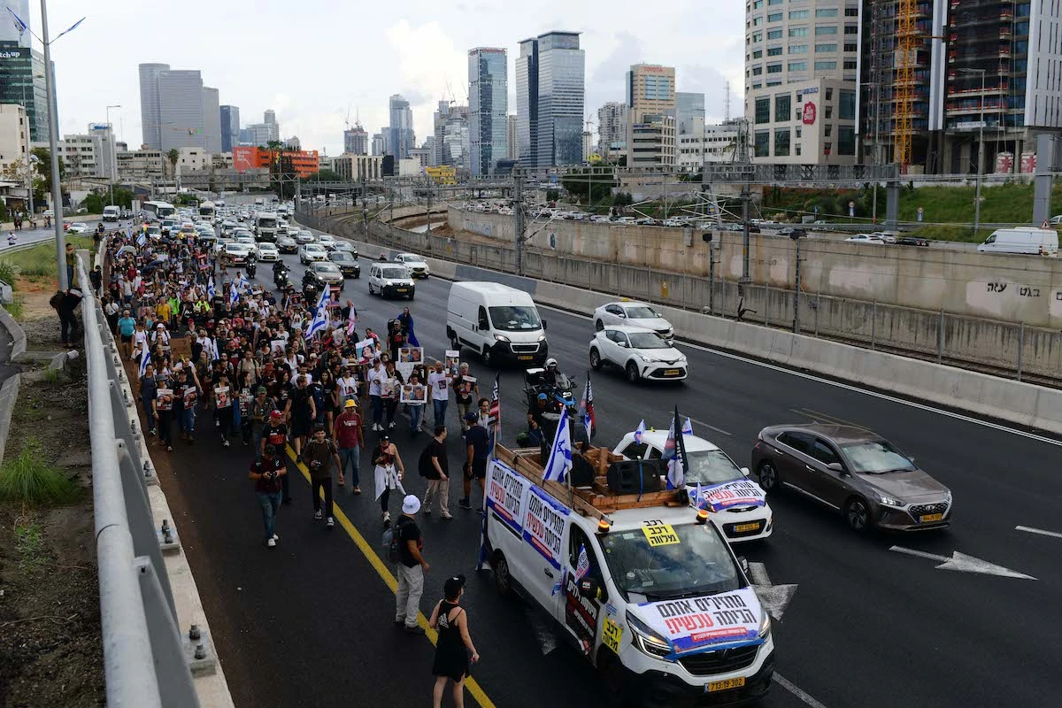 The protest is being led by family members of the approximately 240 hostages who are still being held in the Gaza Strip.
