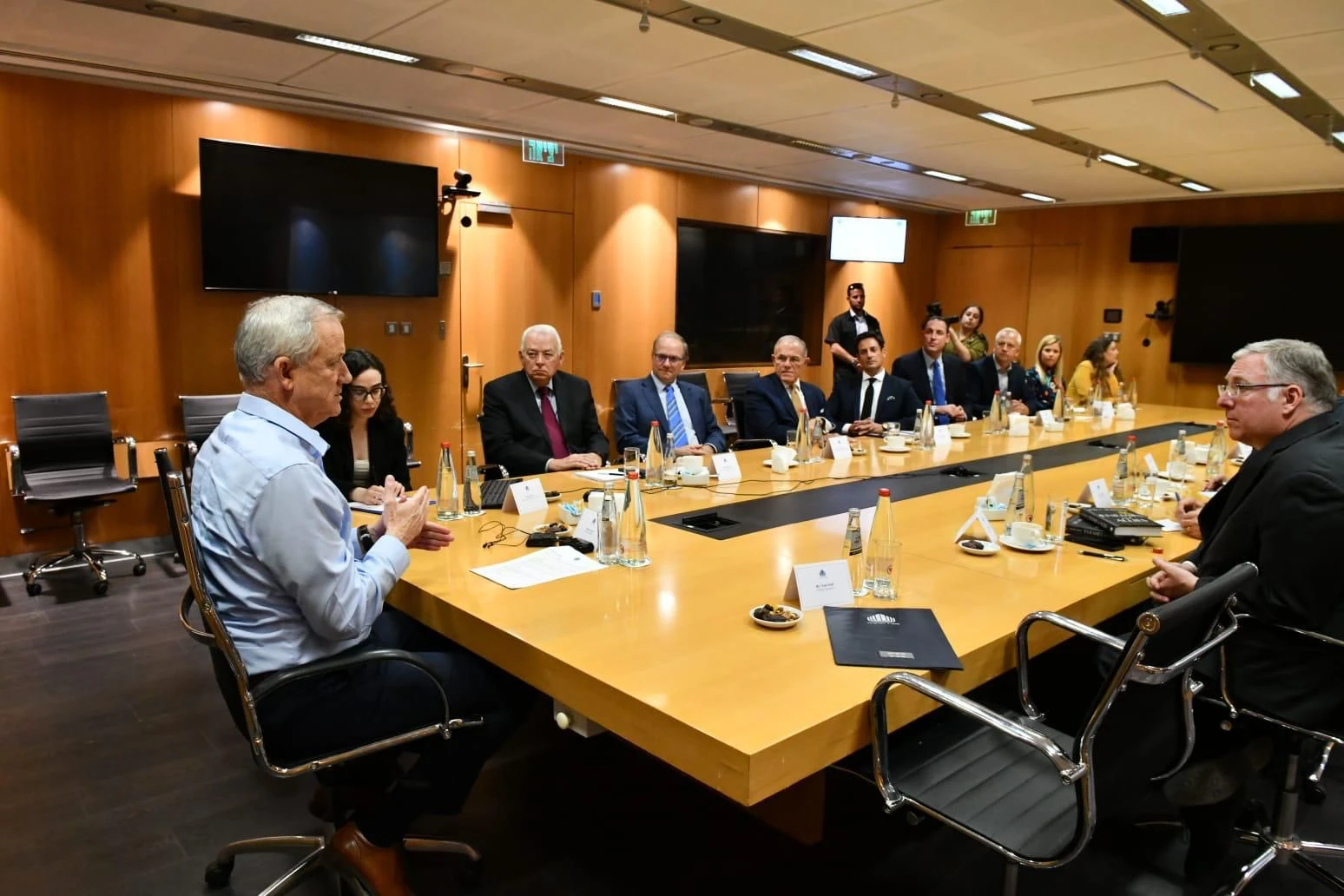 As we sipped cappuccinos and espressos with his staff, Gantz entered the room looking rested and relaxed, wearing dark slacks and a light blue, open-collared, blue dress shirt with no tie and no jacket.