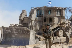 Soldat israélien et bulldozer Caterpillar D9 à Gaza (Photo : IDF)