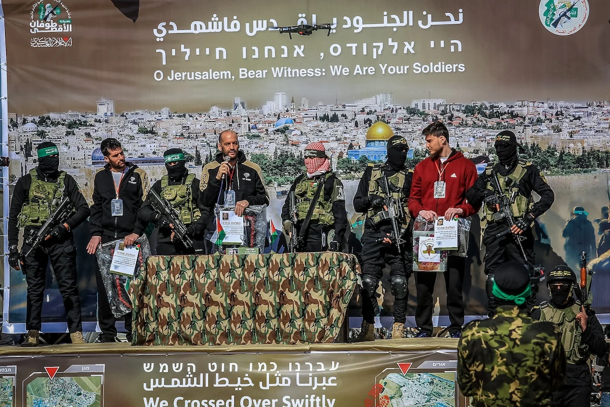 After last week's release sparked shock and outrage in Israel over the visibly poor condition of the freed hostages, Horn, Trupanov, and Dekel-Chen were released in relatively better condition and did not require assistance to walk onto the stage.