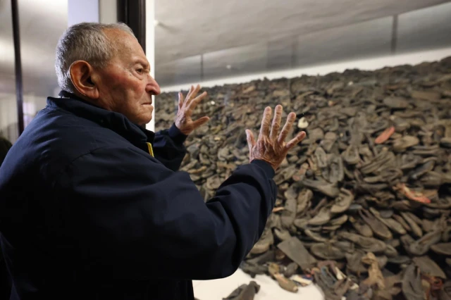 During a recent ceremony at the Auschwitz Memorial, Pinsker burst into tears at the sight of the tiny shoes and said: “It’s so hard for me to look at these shoes. I see them and think how maybe my twin sisters’ shoes are here too.”