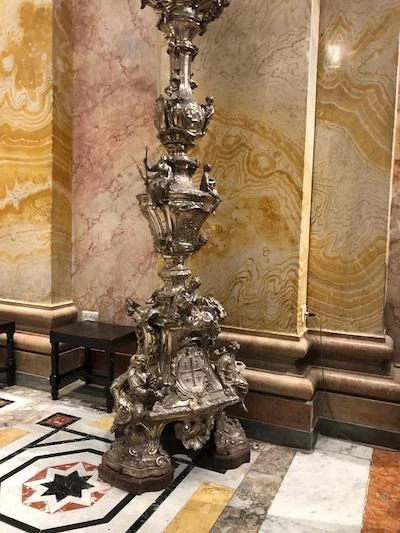Milovitch showed photos of impressive priestly vestments woven with gold and silver embroidery, communion chalices, coats of arms and bejeweled candlesticks from Spain, France, Portugal, Italy, Austria, the Holy Roman Empire and other kingdoms.