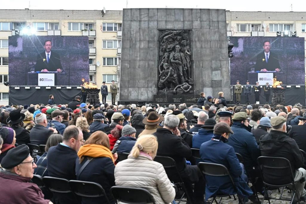 I come here today from Jerusalem, the eternal capital of the free, sovereign, Jewish, and democratic State of Israel. I come here, and with me – with us – here, are the sons and daughters of entire families, entire communities, who were, and continue to be, symbols of vibrant Jewish life, a millennium-old history, the rich and prosperous civilization of Polish Jewry; they stand as symbols, of course, of immense courage, in ghettos, camps, and forests, everywhere, always, and by every means, during the carnage of the terrible Holocaust that befell us during the Second World War. We have come here, 80 years to the day since the outbreak of the Warsaw Ghetto Uprising, the emblem of heroism, during humanity’s darkest hour.