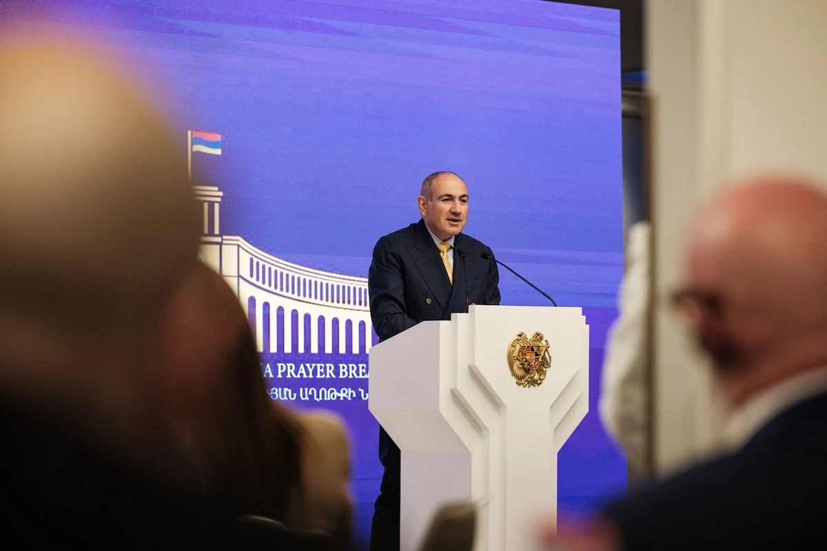Armenian Prime Minister Nikol Pashinyan speaking at the Republic of Armenia Prayer Breakfast (Photo: Garry Derbedrossian)