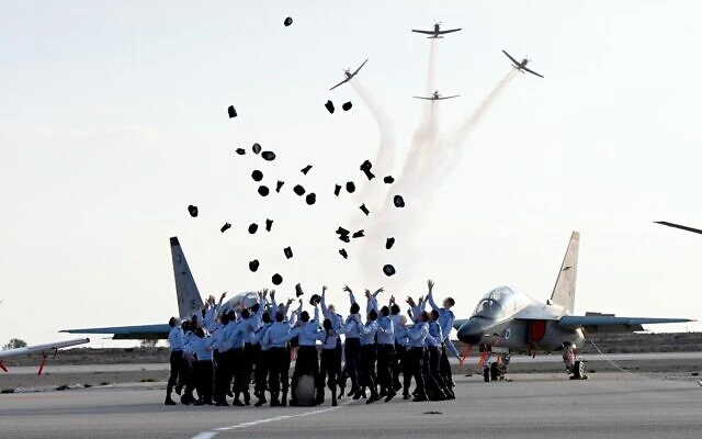 At the ceremony, 41 pilots, including two women, graduated the three-year-long IAF Pilots Course, which trained the cadets as combat officers and conferred upon them degrees from Ben-Gurion University of the Negev.