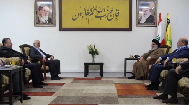 A delegation led by Hamas leaders Ismail Haniyeh and Saleh Al-Arouri met on Sunday morning with Hezbollah leader Hassan Nasrallah in Beirut, according to Lebanese media.