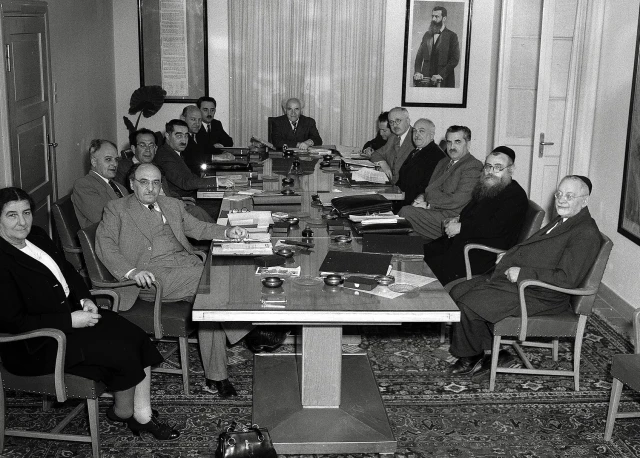 “WE DECLARE that, with effect from the moment of the termination of the Mandate being tonight, the eve of Sabbath, the 6th Iyar, 5708 (15th May, 1948), until the establishment of the elected, regular authorities of the State in accordance with the Constitution which shall be adopted by the Elected Constituent Assembly not later than the 1st October 1948, the People’s Council shall act as a Provisional Council of State, and its executive organ, the People’s Administration, shall be the Provisional Government of the Jewish State, to be called ‘Israel’.”