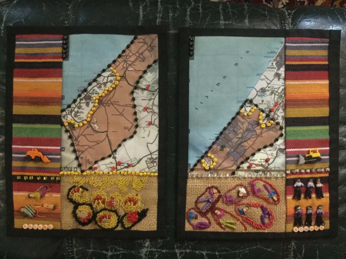 “I took the Gaza Strip,” she explained, "made it into two parts. And I used ‘worry dolls.’" The tiny cloth dolls are a feature of Roggel's Holocaust quilts. Originating from indigenous Central American culture, worry dolls are placed under the pillow at night, the idea being the dolls worry instead of the person asleep. “And in the morning you can decide if you want to keep worrying about something,” Roggel said.