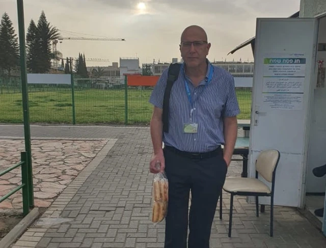 Professor Gal Ifergane carried the bread into the hospital to protest a ban on bringing hametz, or leavened products, into hospitals during Passover, known as the Feast of Unleavened Bread.