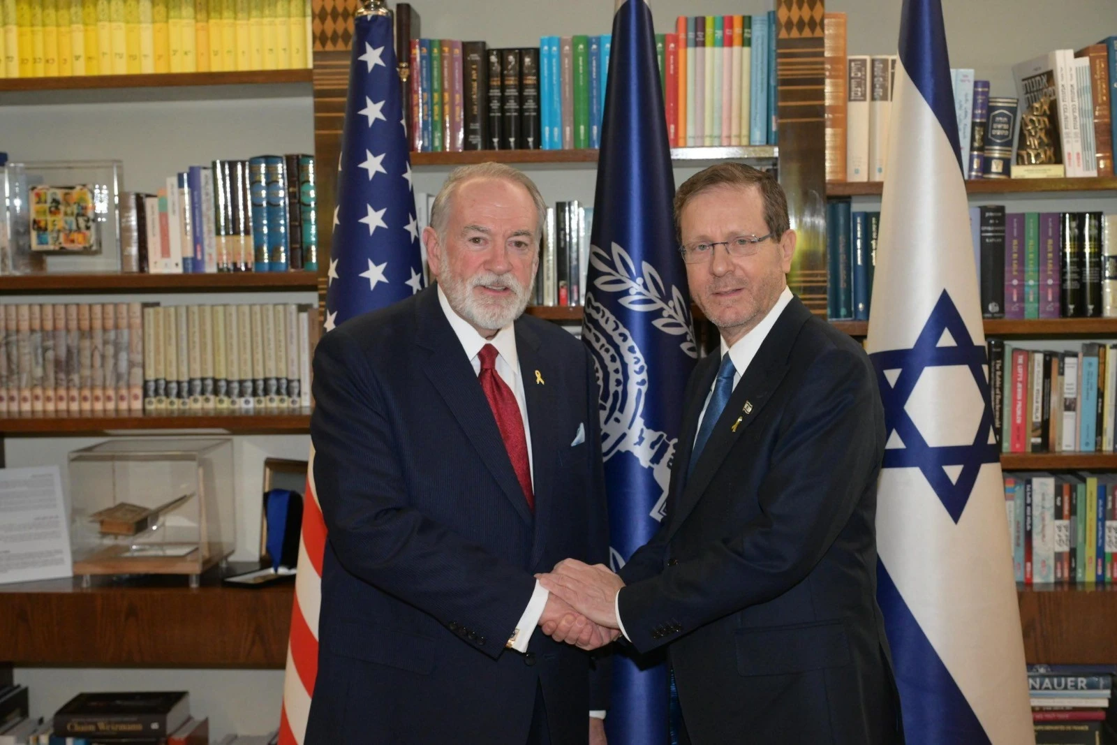 The meeting took place shortly after Ambassador Huckabee presented his credentials to President Herzog.