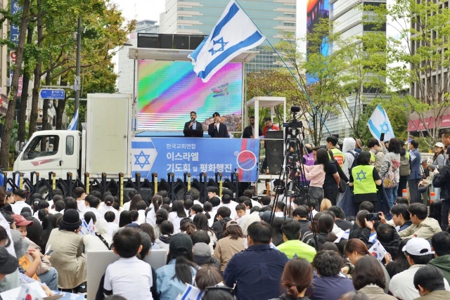 Last Saturday, the large crowd of believers gathered for an event near the Israeli Embassy in central Seoul to show their support for Israel.
