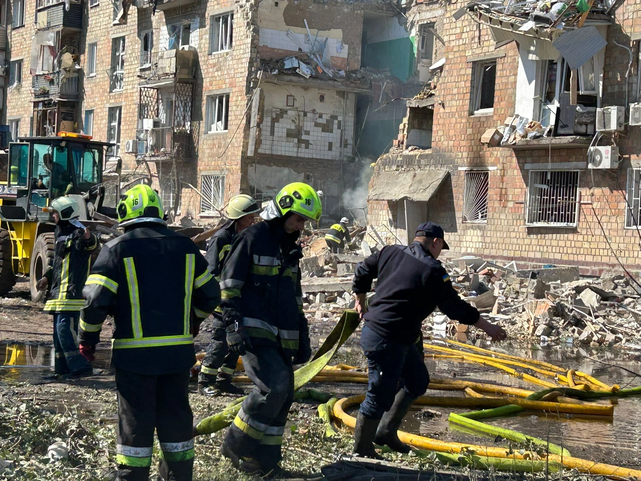 Emergency crews were actively searching for any possible survivors who might be trapped in the rubble.