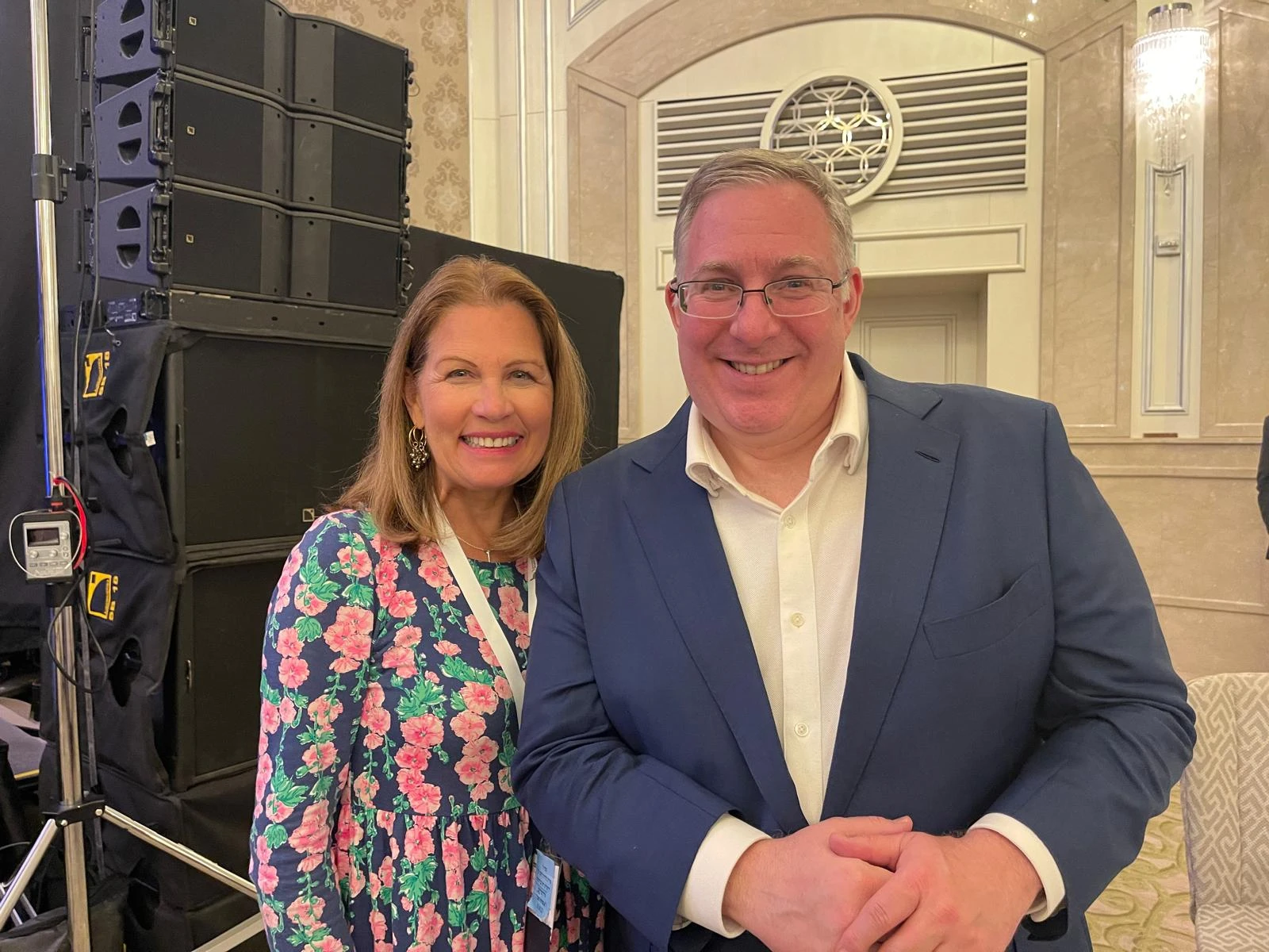 Former Rep. Michele Bachmann and ALL ISRAEL NEWS editor Joel C. Rosenberg at the Jerusalem Prayer Breakfast, May 31, 2023. (photo credit: All Israel News staff)