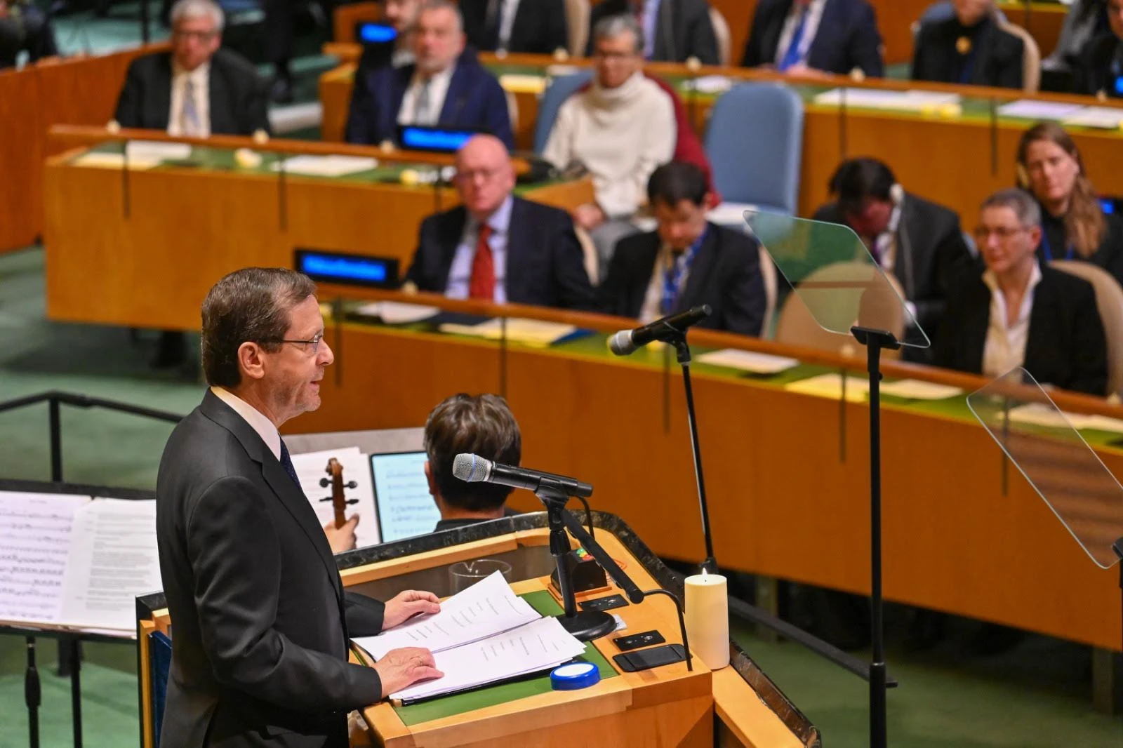 Israeli President Isaac Herzog spoke at a ceremony marking International Holocaust Remembrance Day in New York City at the UN Headquarters on Monday. The event commemorated 80 years since the liberation of Auschwitz.