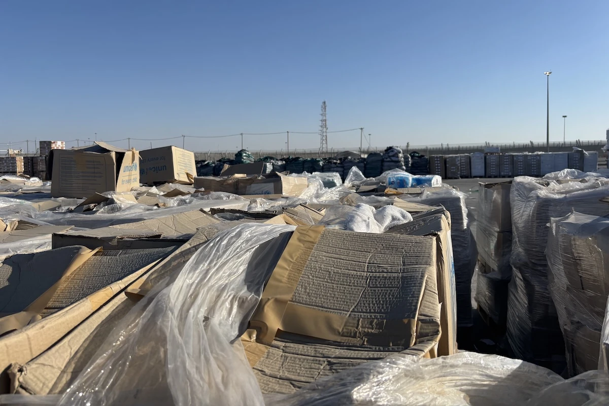 Rows upon rows of pallets stretched before us – everything from canned tuna to diapers. The NGOs and humanitarian organizations responsible for moving the goods have argued that it’s been too dangerous to collect and deliver them, even after Israel implemented secure corridors. Even when Israel arranged trucks for deliveries, it often took these organizations several days to organize pickups once new aid arrived.