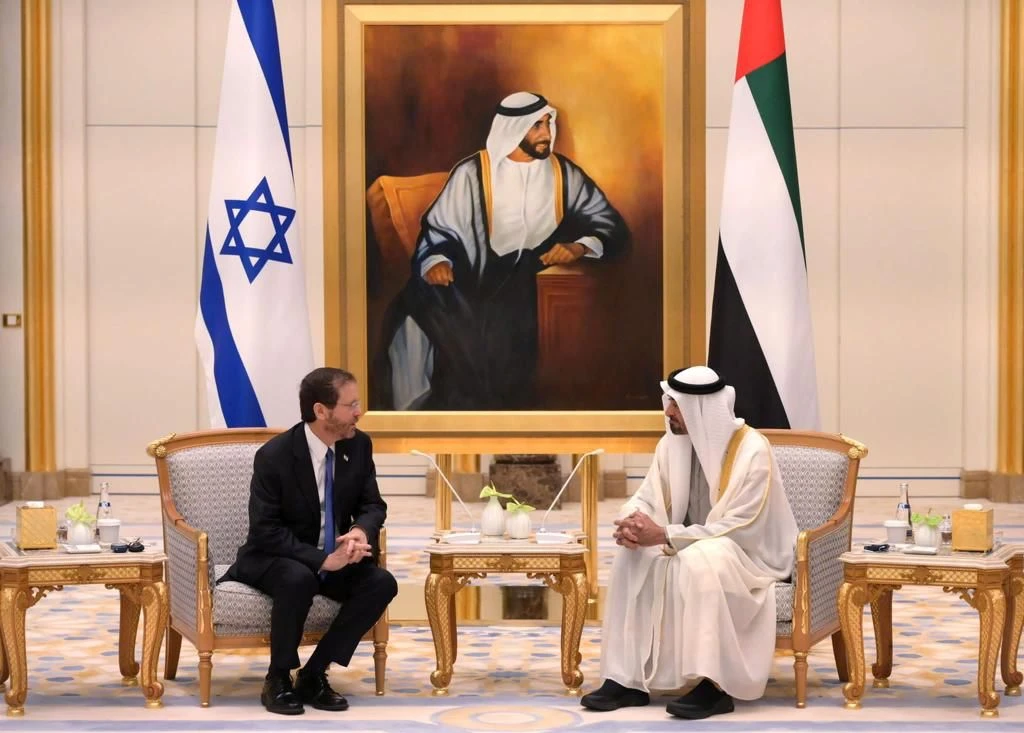 On his first-ever state visit to the United Arab Emirates, Israeli President Isaac Herzog and First Lady Michal Herzog landed in the capital city of Abu Dhabi Sunday morning and were warmly greeted at the royal palace by Crown Prince of Abu Dhabi, Sheikh Mohammed bin Zayed Al Nahyan.